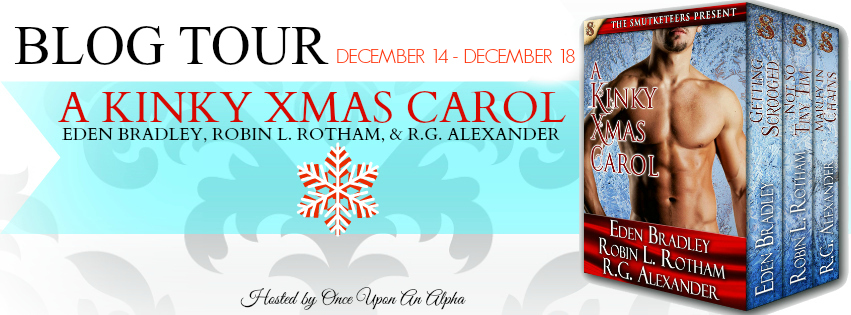 What to say? I absolutely loved this anthology. Talk about a wonderfully erotic play on the scrooge theme. If you are looking for a bit of ménage, some BDSM and some definite kink for your Christmas then Bradley, Rotham, and Alexander definitely deliver in these three interwoven novellas about the Knight clan.I absolutely loved watching Holly Knight live out her bucket list with Ebenezer “Ben” Hall in Eden Bradley’s Getting Scrooged. What might have been underhanded tactics to win at a merger contract though definitely backfires for one hot closer when his shenanigans almost cost him the love of his life. I’ll tell you though I certainly wish I had a Ben to work through my bucket list with. Then again, I’d have to write one first… Hmmm, what to add to the list? And where do you stop when it comes to fantasy and reality? Because I have got to tell you Ben, Justin and Kit make for one nice fantasy. Ben on the other hand, makes for a good reality.