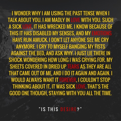 Fear flooded my thoughts. Irrational thoughts I couldn’t control out of fear of my love for him.