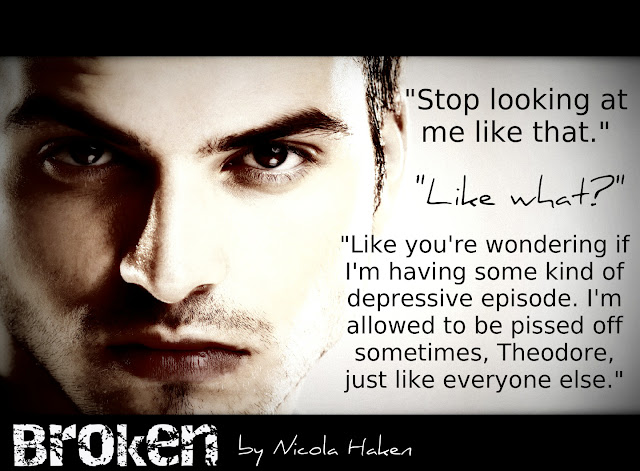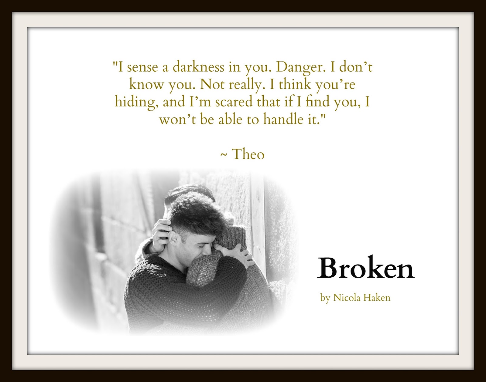 “Broken is truly a remarkable book. I was blown away by it, by the raw and sincere way Ms. Haken took these men through the roller coaster of living with unrelenting demons. And now, as I sit here wondering if I have to courage to post this review, all I can think about is how far into my heart Theo and James have embedded themselves–and how I hope they never leave. I think it might be too hard to say goodbye…although maybe not as hard as it was find the words that I hope compel you to read this breathtaking book.” ~ Beth, Give Me Books