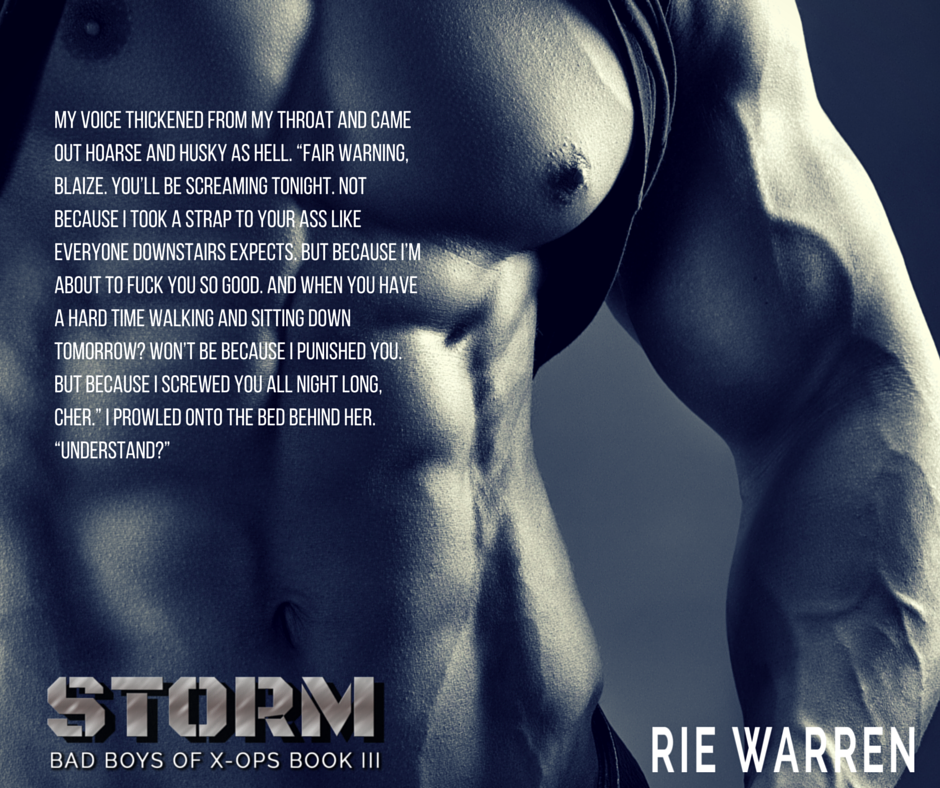 My voice thickened from my throat and came out hoarse and husky as hell. “Fair warning. You’ll be screaming tonight. Not because I took a strap to your ass like everyone downstairs expects. But because I’m about to fuck you so good. And when you have a hard time walking and sitting down tomorrow? Won’t be because I punished you. But because I screwed you all night long, cher.” I prowled onto the bed behind her. “Understand?”