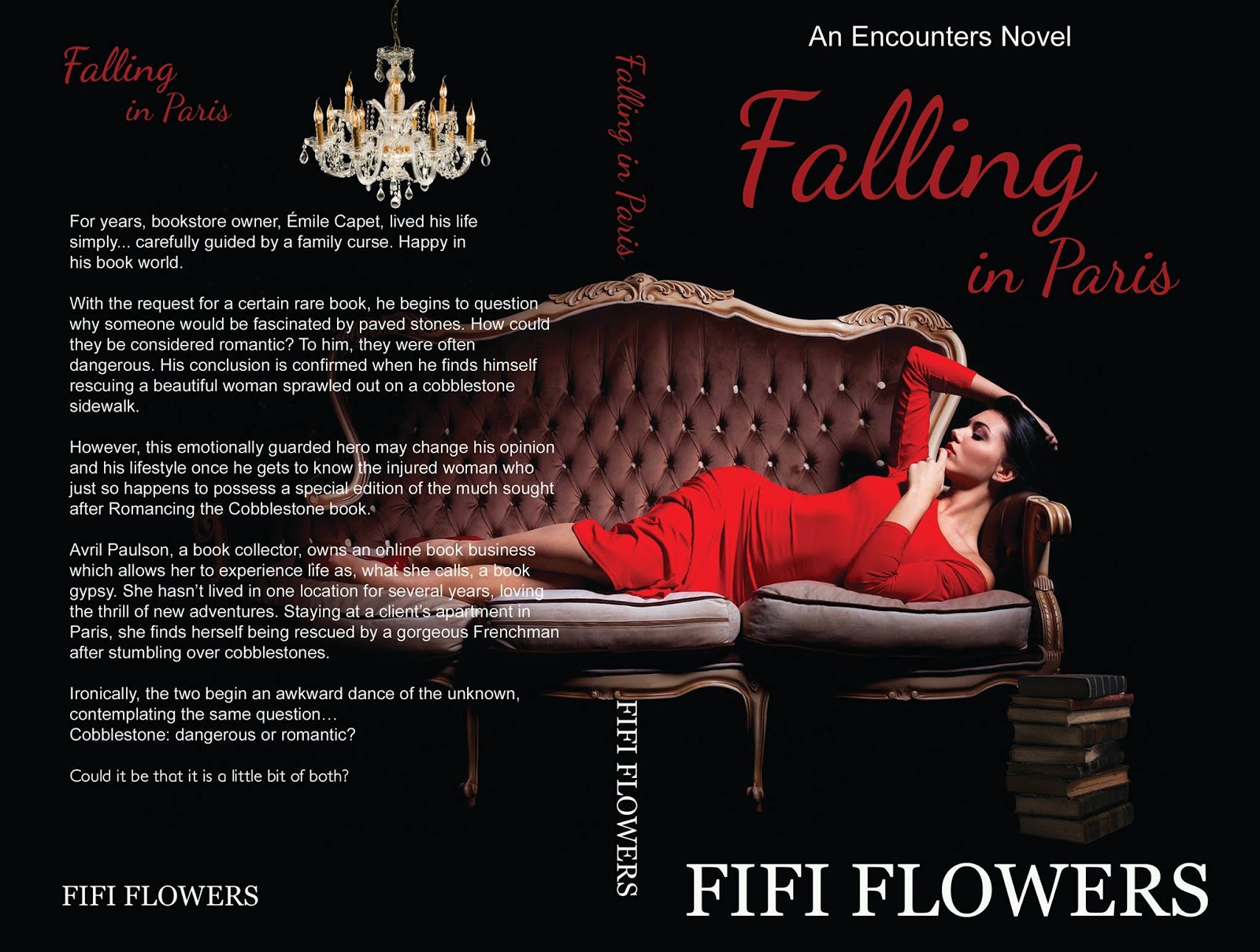 Fifi Flowers’ Falling in Paris takes you on a journey that is Oh so romantic and absolument magnifique! I love both of the previous books in her Encounters series but I do believe this is by far my favorite. Such gorgeously descriptive writing! I felt the cobblestones under my feet, smelled the fragrance of coffee and freshly baked baguettes, and even imagined myself sipping wine at an outdoor cafe as this delicious story unfolds. And what a story! The discovery of a rare book about a long ago, forbidden love is the impetus for this modern day romance.I adored Avril. She has my dream job; operating an online book business, jetting off to various cities searching for antique books for her clientele of bookshops, antique stores, and private collectors. She embraces every aspect of her job, especially the travel. Most especially spending time in seductive, romantic Paris. It is so fitting that Avril’s wardrobe consists entirely of vintage chic. She and Émile are the perfect match! The sexy, inscrutable, and gorgeous bookshop owner also has a penchant for vintage attire, which dials up his sex appeal to scorching hot. When Émile rescues Avril from a tumble on the cobblestones, their chance encounter leads to intensely erotic dates where Avril’s fantasies are fulfilled.